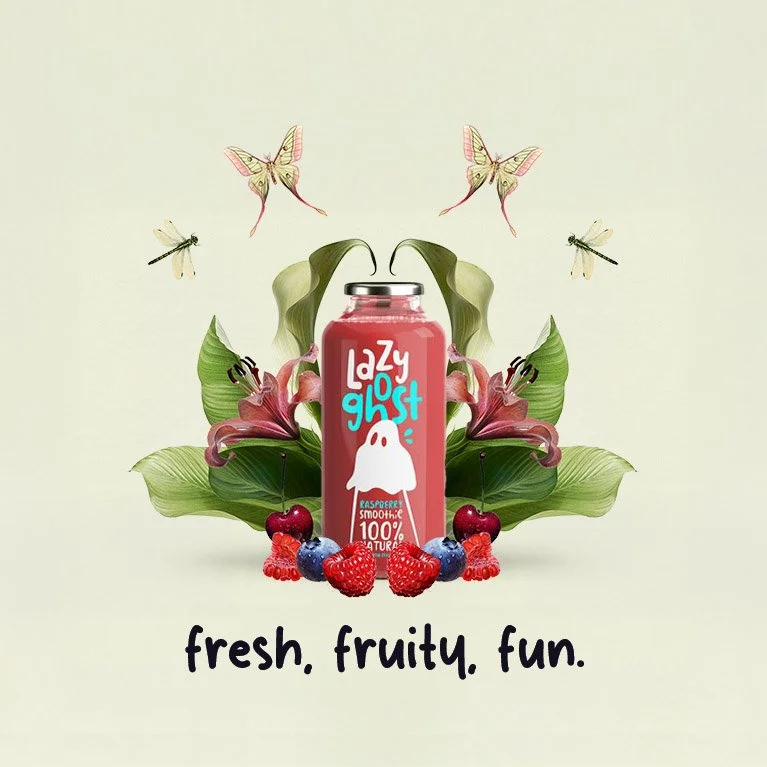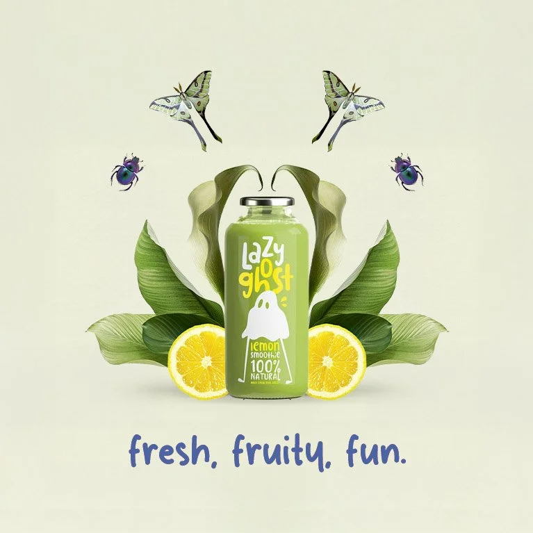 The result is a playful yet elevated visual direction that highlights the freshness of the product while aligning with Lazy Ghost’s calming, organic aesthetic.